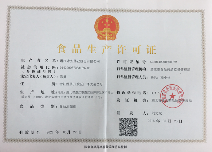 潛江永安藥業(yè)股份有限公司成立于2001年,坐落于江漢平原腹地潛江市國(guó)家高新技術(shù)產(chǎn)業(yè)開發(fā)區(qū),占地500余畝,注冊(cè)資金貳億玖仟肆佰陸拾捌萬貳仟伍佰元整,是一家擁有自主知識(shí)產(chǎn)權(quán)的國(guó)家高新技術(shù)企業(yè)。公司股票于2010年3 月5日在深圳證券交易所掛牌上市(股票代碼為002365)。公司具有雄厚的技術(shù)開發(fā)能力,是湖北省創(chuàng)新型企業(yè)和湖北省知識(shí)產(chǎn)權(quán)建設(shè)示范企業(yè)。公司研發(fā)平臺(tái)分別被認(rèn)定為省級(jí)企業(yè)技術(shù)中心和湖北省功能性食品添加劑工程技術(shù)研究中心。 經(jīng)過多年的發(fā)展,公司形成了以食品及藥品添加劑?;?/p>